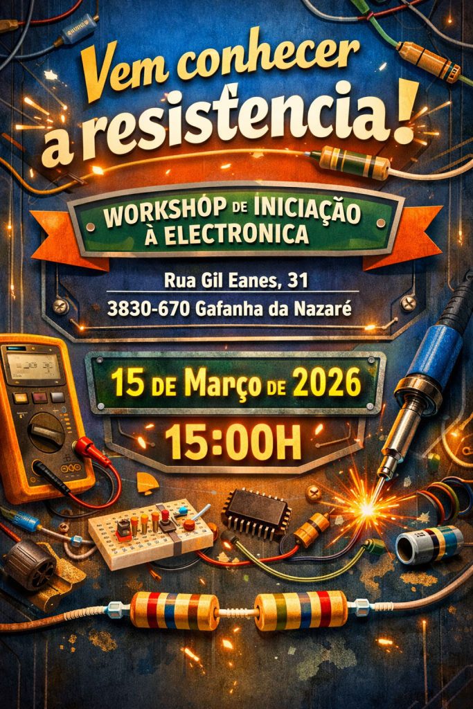 No dia 15 de Março de 2026, pelas 15 horas irá realizar-se um workshop gratuito de iniciação á electrónica, na localização identificada abaixo.